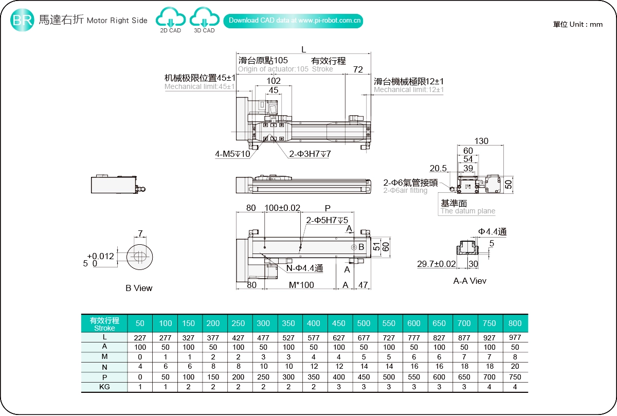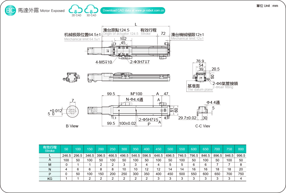 이동 범위: 50-800mm
