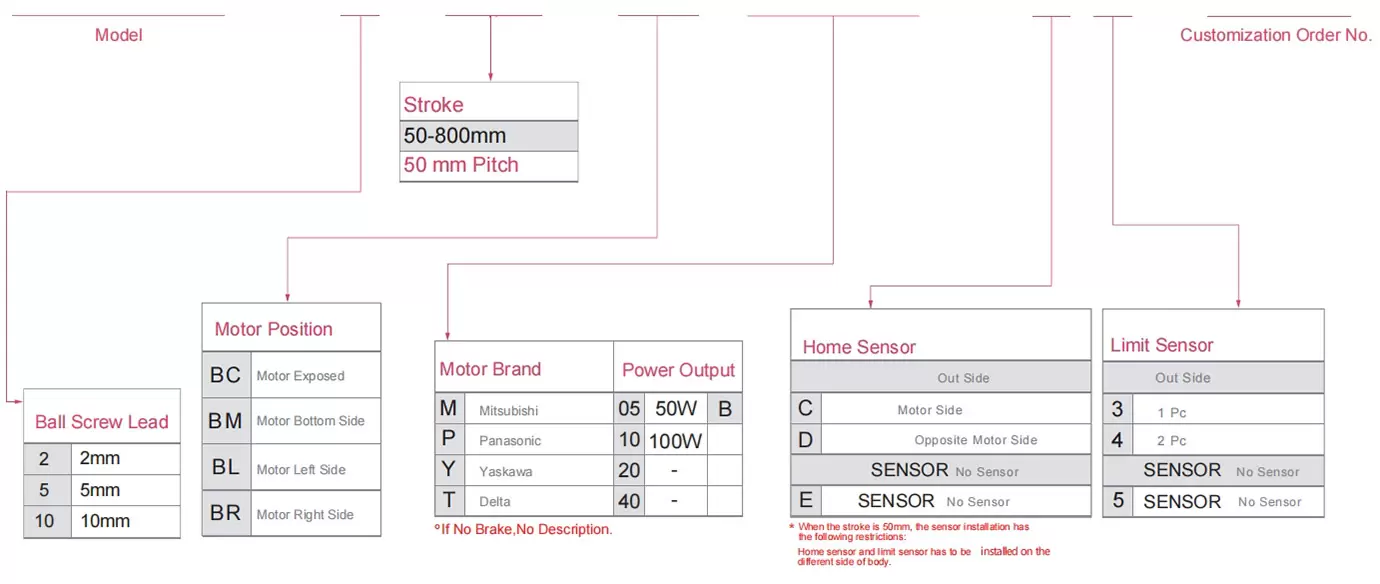 *스트로크가 600mm를 초과하면 볼스크류의 런아웃이 발생합니다. 이러한 상황에서는 작동 속도를 낮추는 것이 좋습니다.