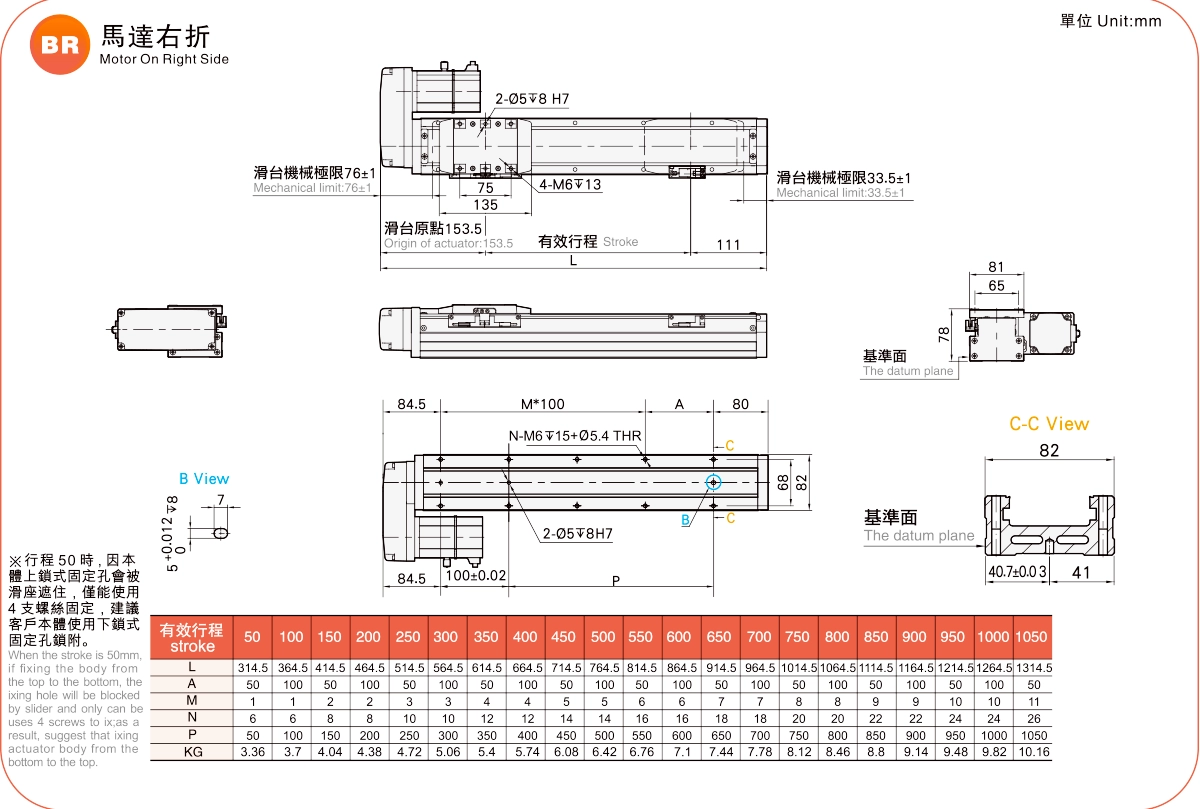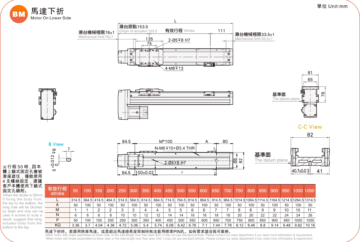 | 사용 위치 | 구동 모드 | 모델 사양 | 모터 출력 (w) | 너비(mm) | 반복성 (mm) | 볼 스크류 사양 | 최대 탑재량(kg) | 최대 속도 (mm/s) *1 | ||