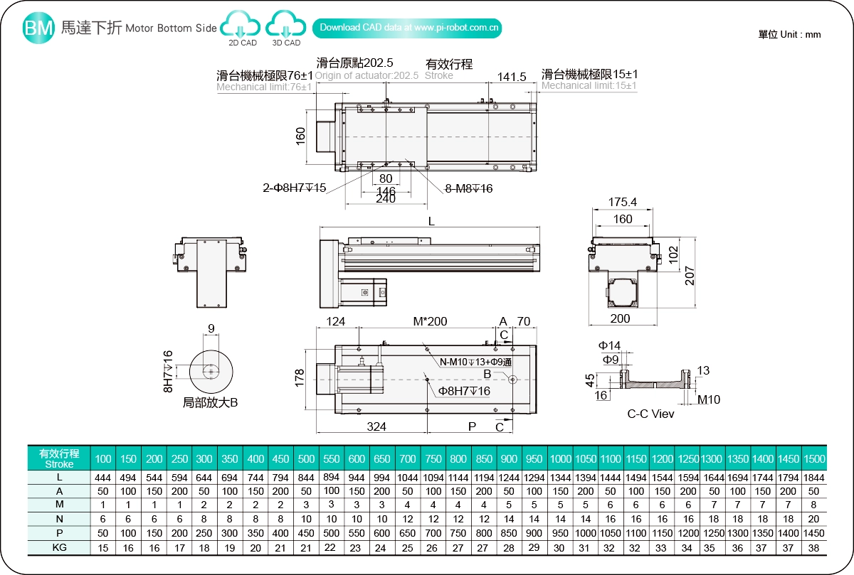 | 고강성 선형 가이드(mm) | 볼 스크류 액추에이터 | |||||