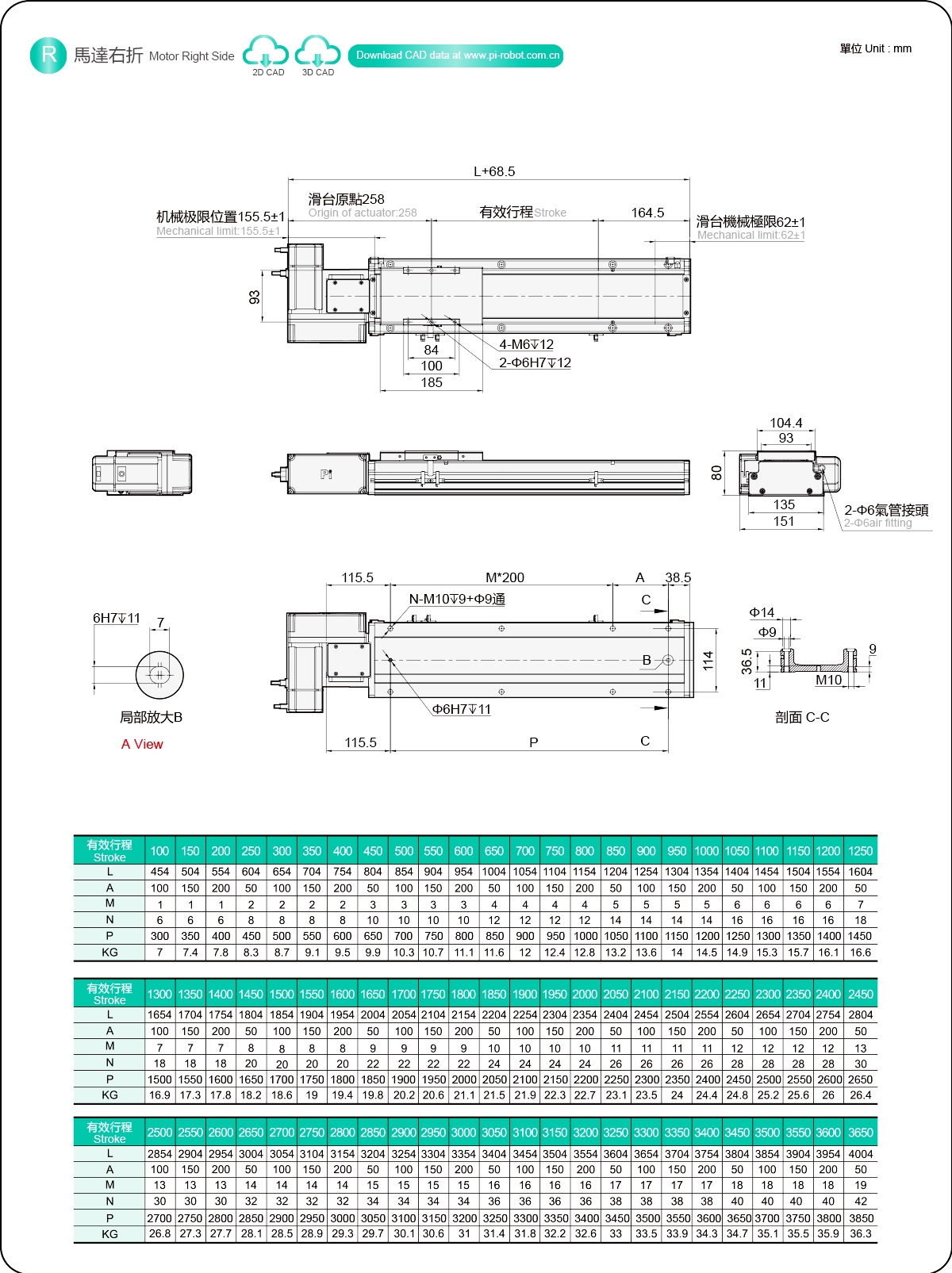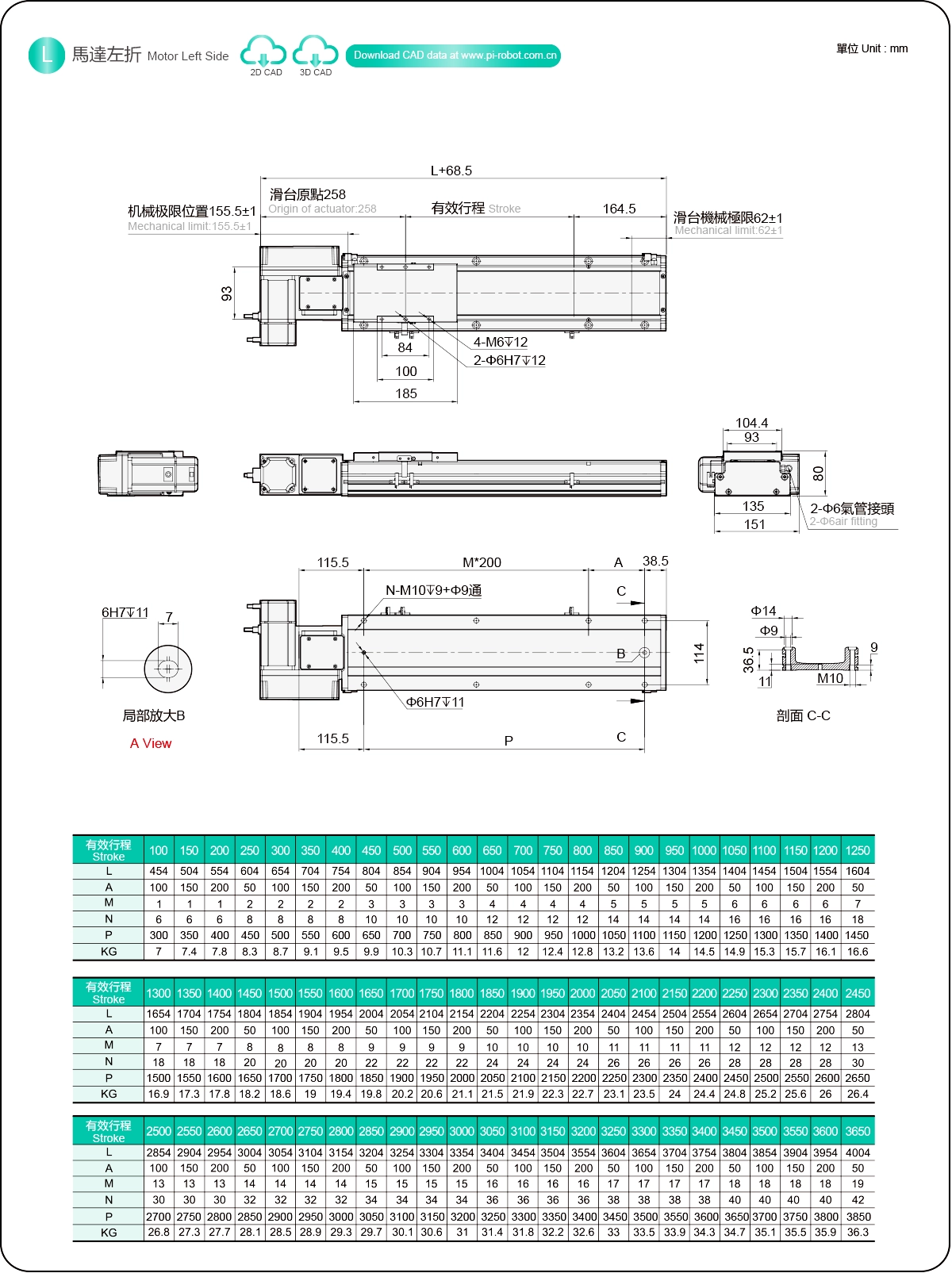 스트로크 피치(mm)100-3650mm/50mm 피치
