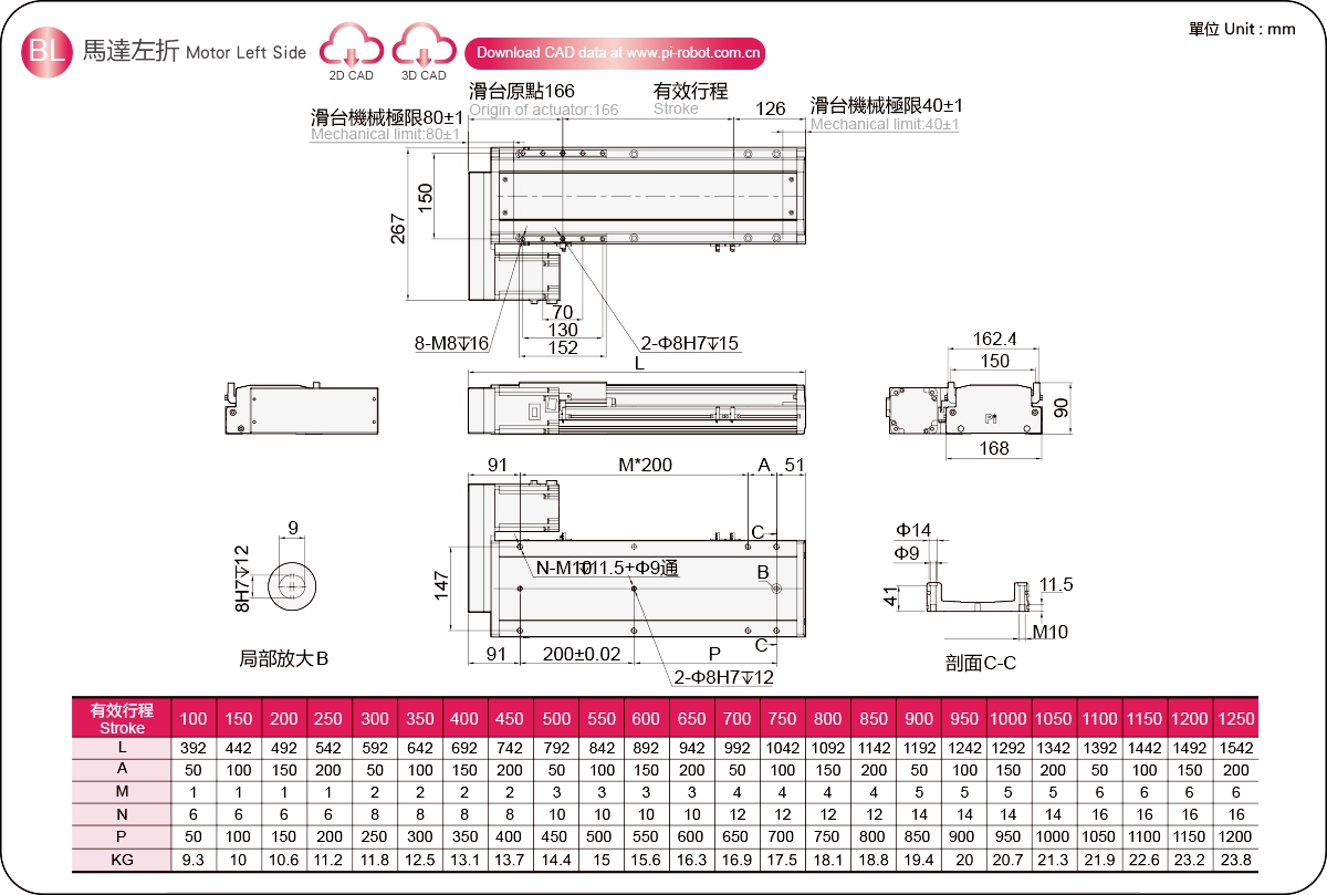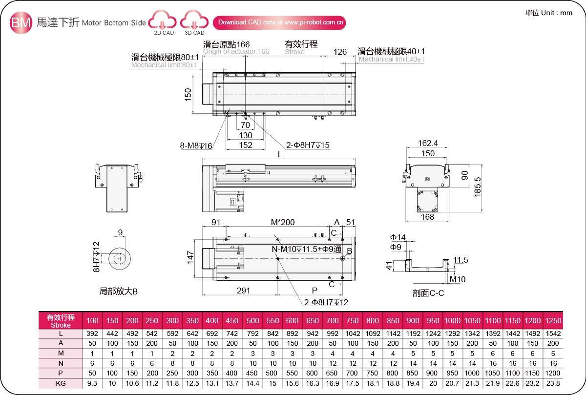 | 고강성 선형 가이드(mm) | 볼 스크류 액추에이터 | |||||