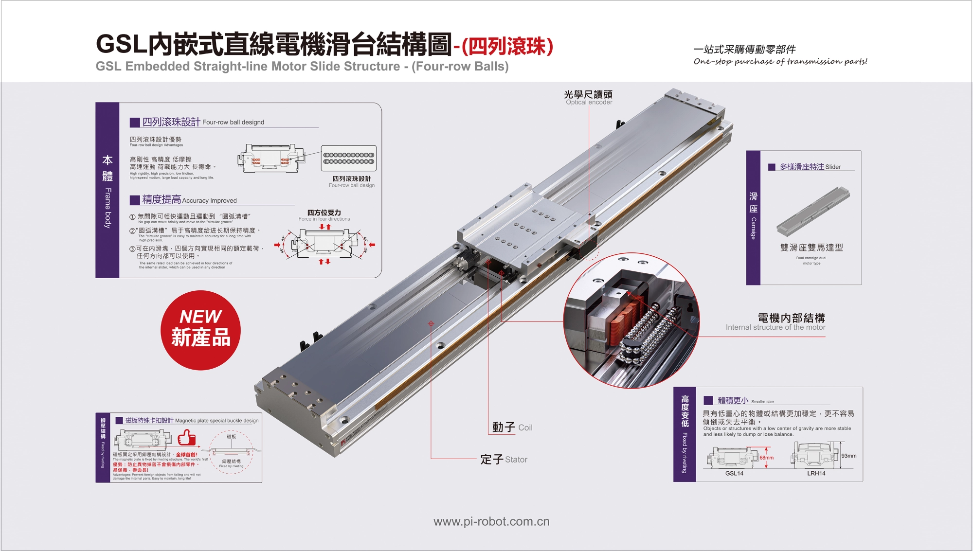 | 사용 위치 | 구동 모드 | 모델 사양 | 모터 사양 | 본체의 너비(mm) | 신체 높이(mm) | 반복성(mm) | 연속 추력(N) | 최대 추력(N) | lrms(A) | 최대 탑재량(kg) | 최대 속도 (mm/s) *1 |