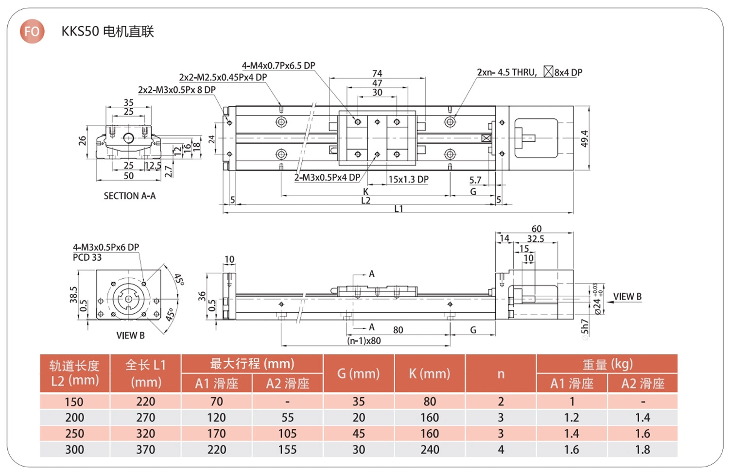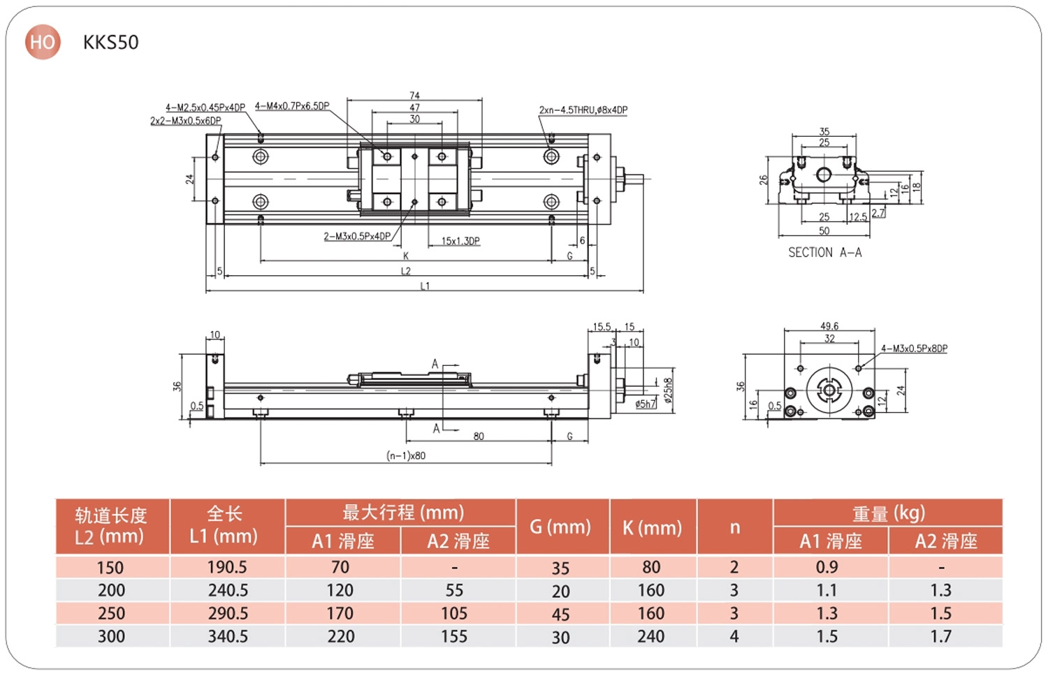 | KKS50 | 150 | ±0.003 | ±0.01 | 0.02 | - | 0.01 | - | 4 | 2 |