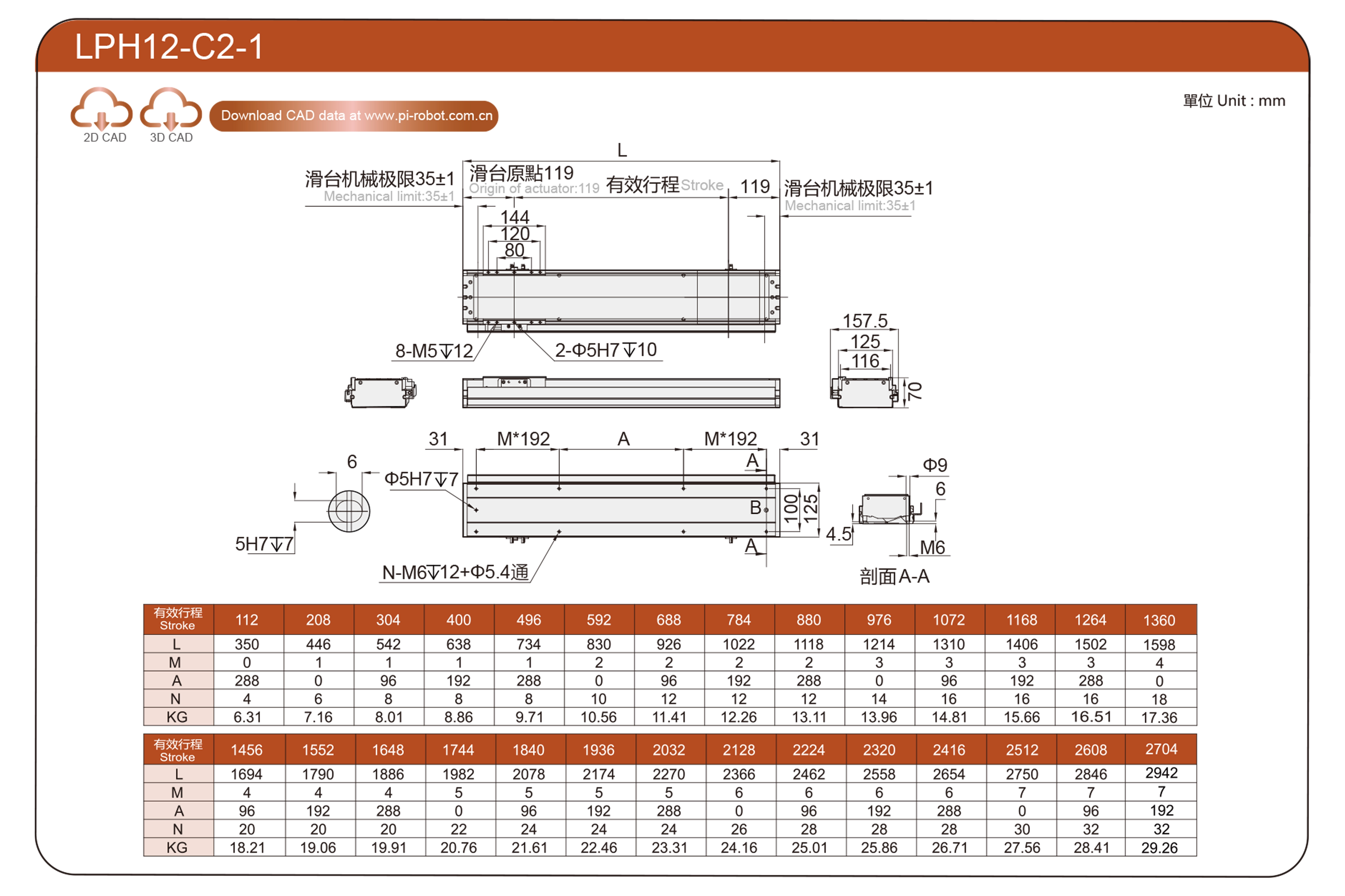 | 기준 | 선형 모터 로봇 | LPH12 | P40-C2-S | 125 | 70 | ±0.003 | 80 | 176 | 3.3 | 20 | 2500 |