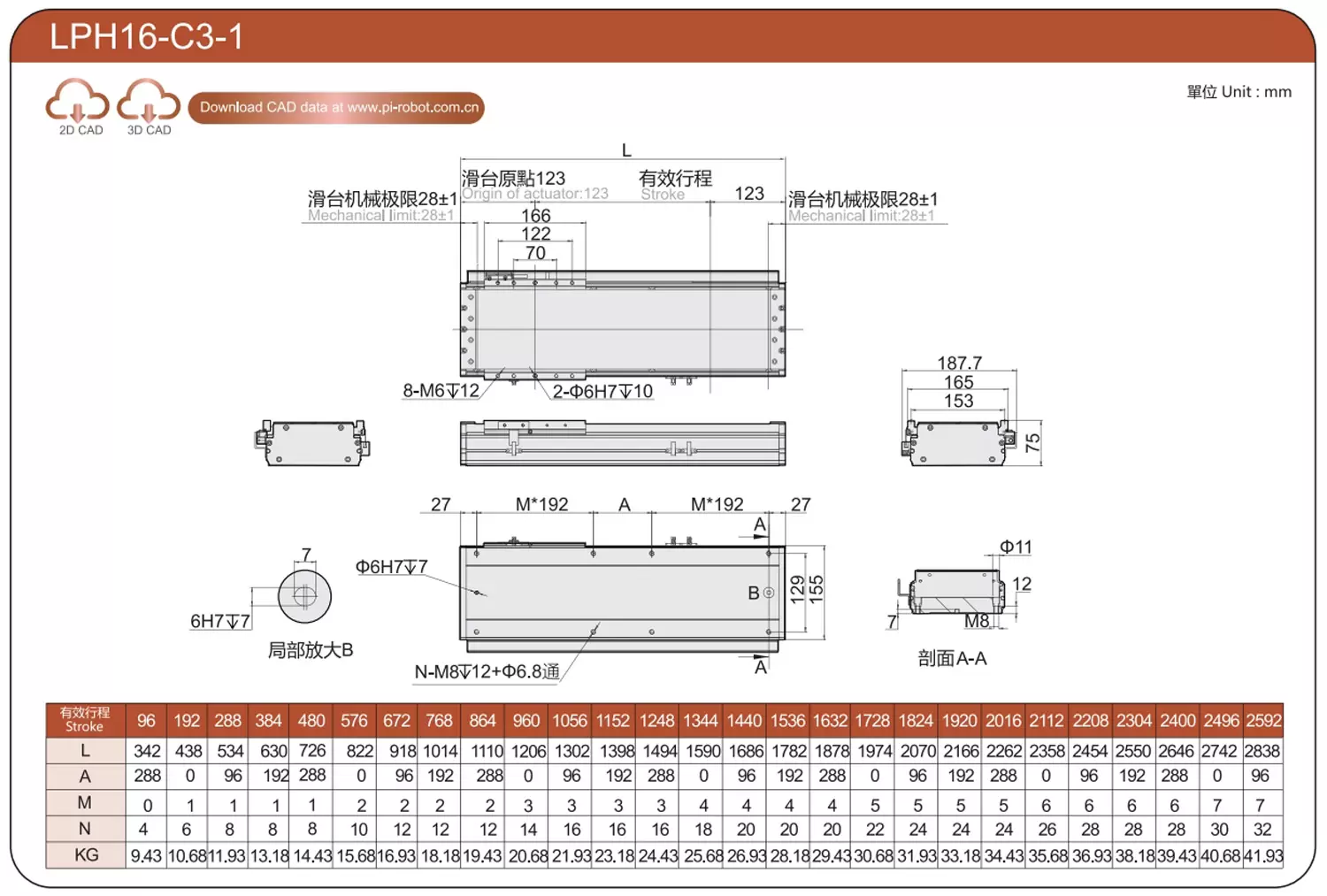 | 기준 | 선형 모터 로봇 | LPH12 | P40-C2-S | 125 | 70 | ±0.003 | 80 | 176 | 3.3 | 20 | 2500 |