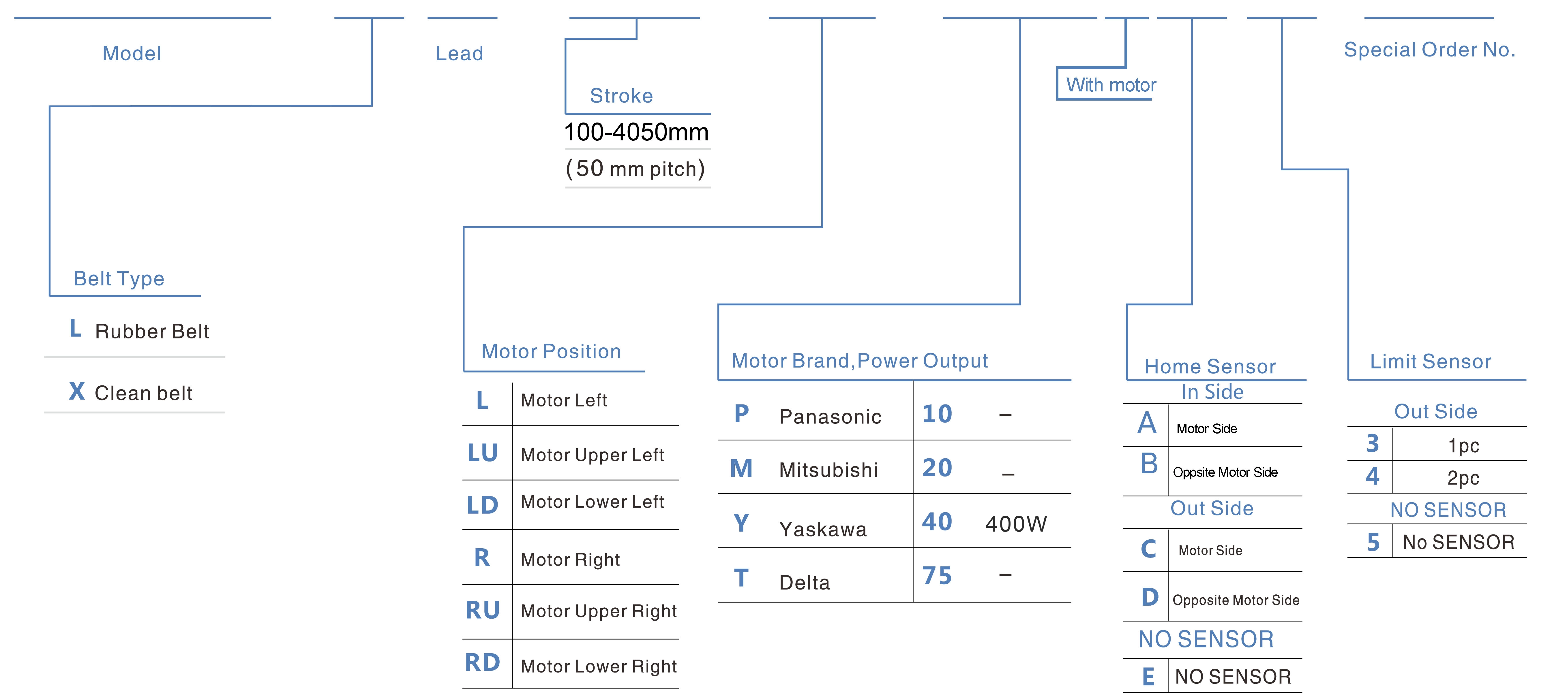 스트로크 피치(mm)100-4050mm/50mm 피치