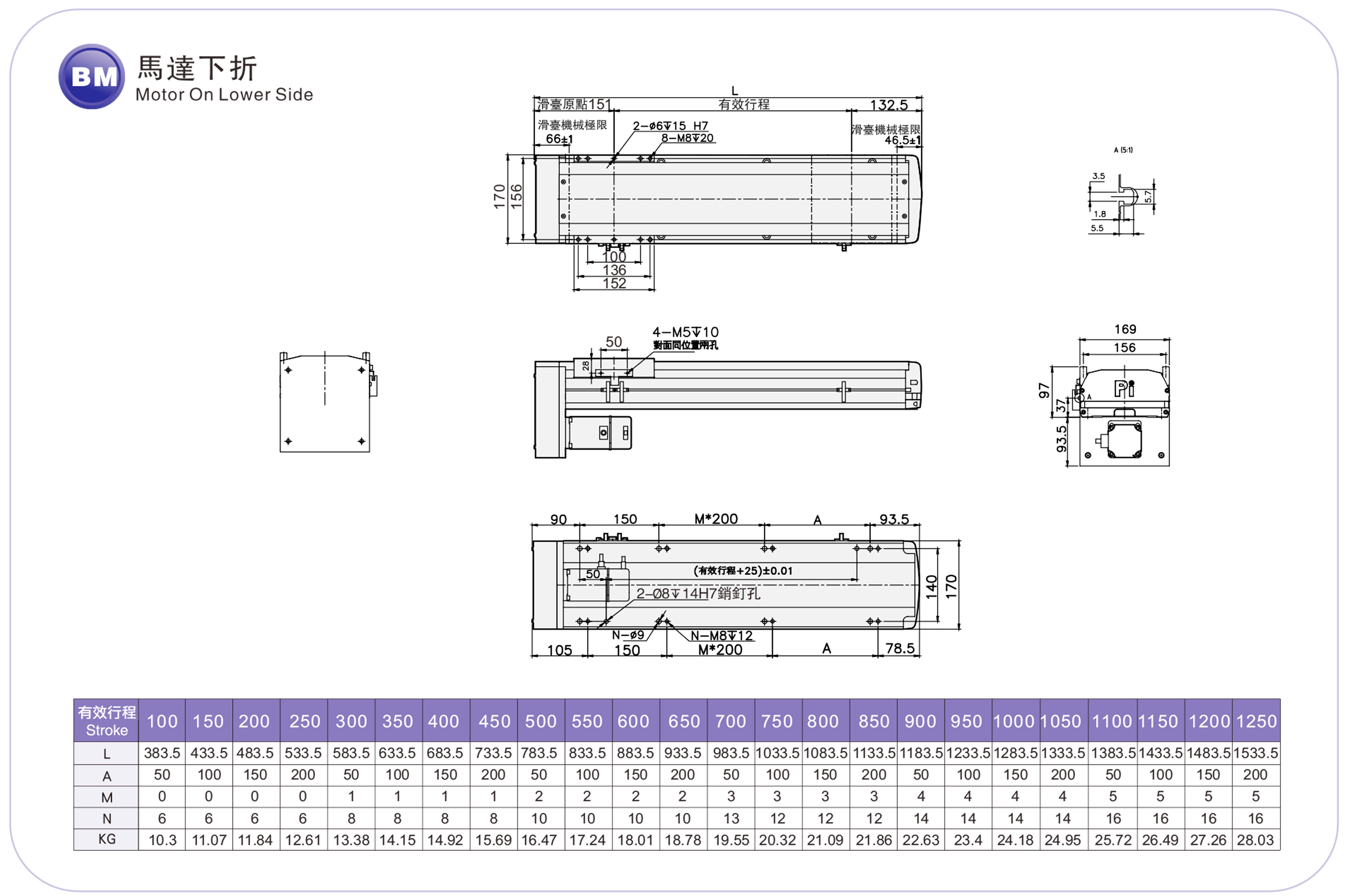 | 사용 위치 | 구동 모드 | 모델 사양 | 모터 출력 (w) | 너비(mm) | 반복성 (mm) | 볼 스크류 사양 | 최대 탑재량(kg) | 최대 속도 (mm/s) *1 | ||