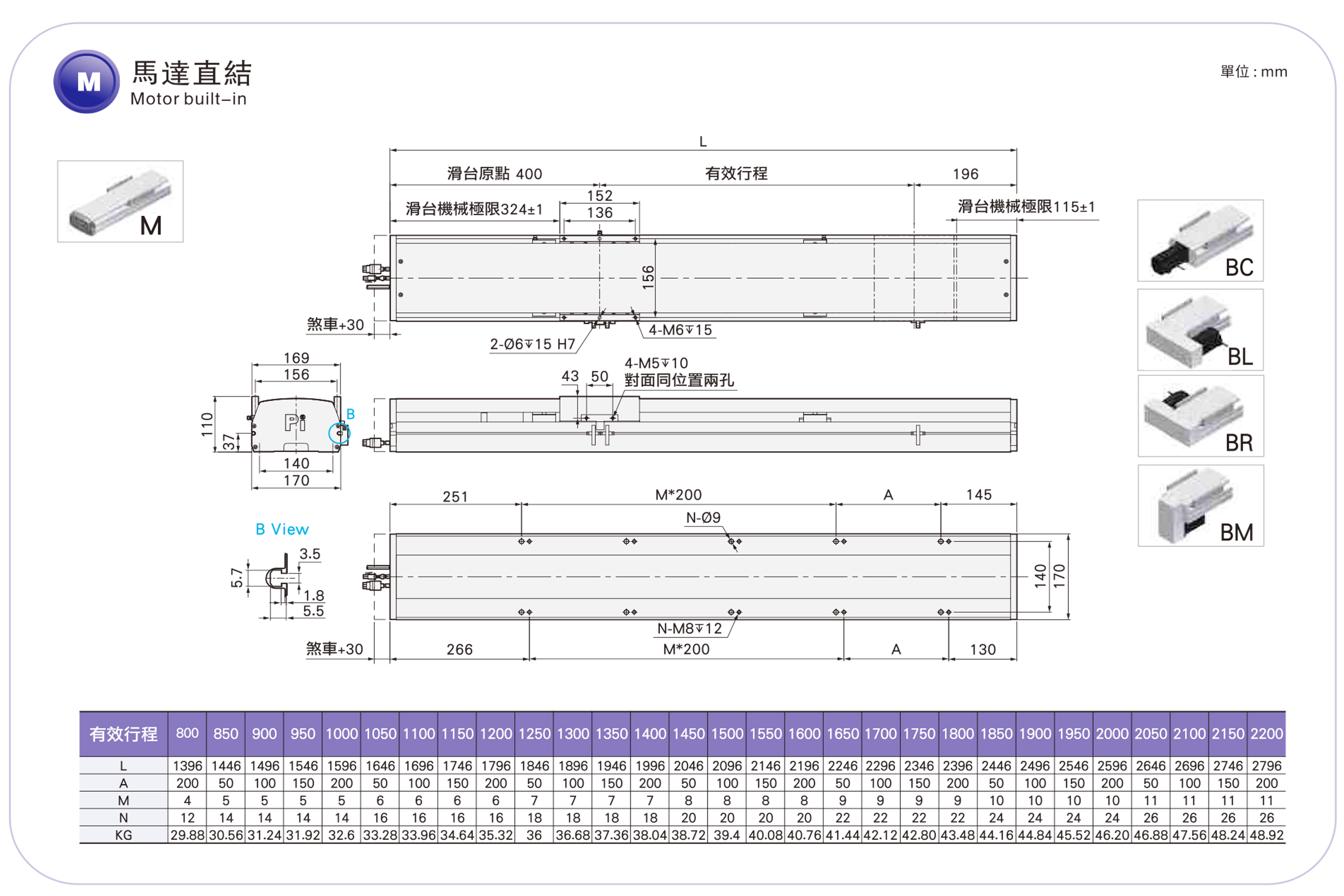 | 사용 위치 | 구동 모드 | 모델 사양 | 모터 출력 (w) | 너비(mm) | 반복성 (mm) | 볼 스크류 사양 | 최대 탑재량(kg) | 최대 속도 (mm/s) *1 | ||
