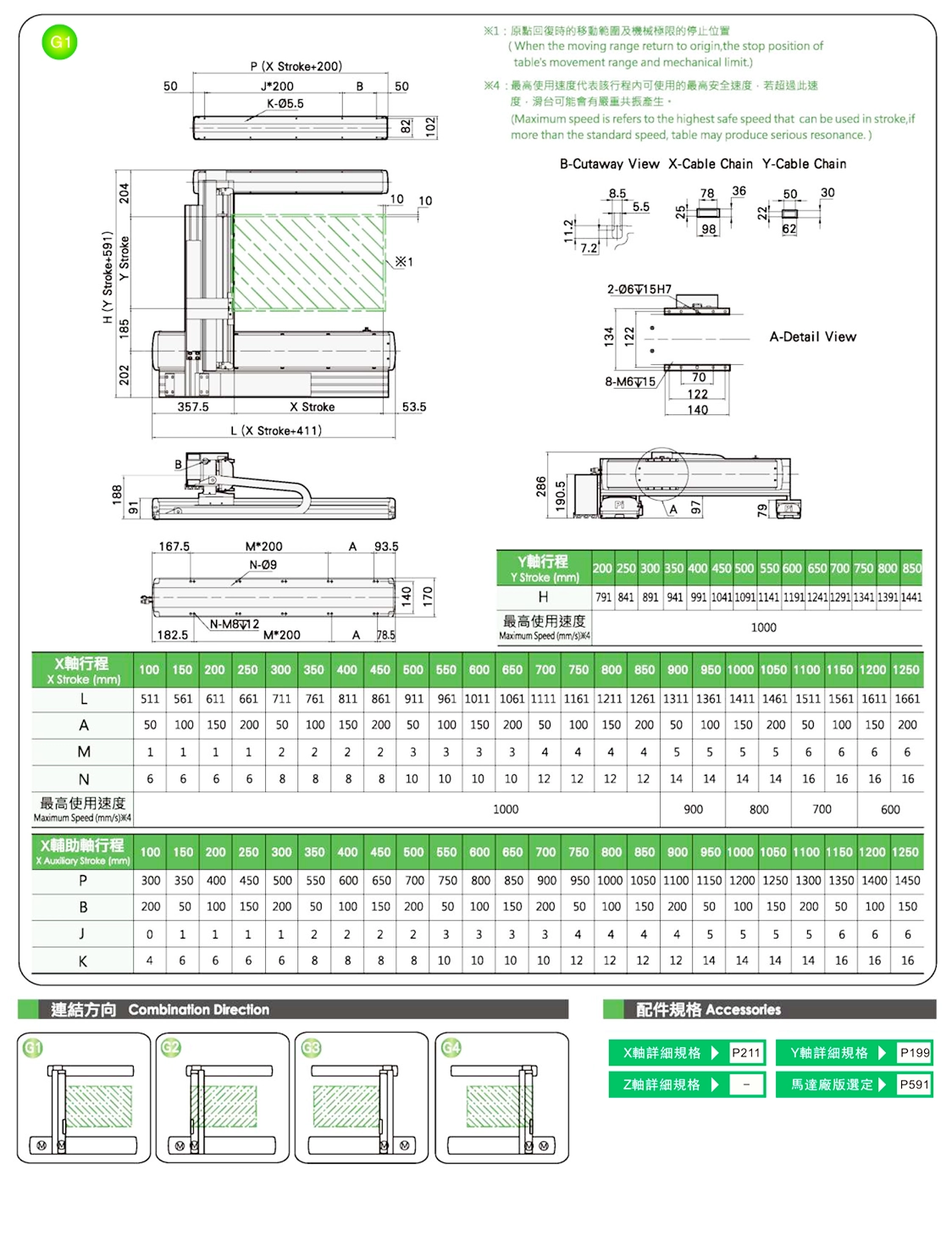 | 사용 위치 | 구동 모드 | 사양 | 콤비네이션 | 축 번호 | 최대 속도(mm/s) | 스트로크(mm) | ||||