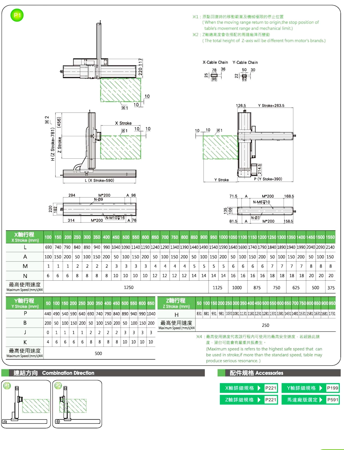 | 사용 위치 | 구동 모드 | 사양 | 콤비네이션 | 축 번호 | 최대 속도(mm/s) | 스트로크(mm) | ||||