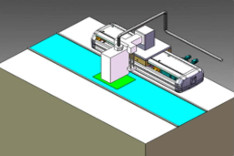 X축 방향으로 함께 움직이는 두 개의 전동 슬라이딩 테이블을 사용하십시오.